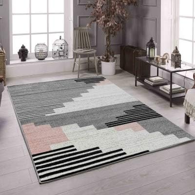 Koton Pinta Tapis De Salon Contemporain Noir Gris Blanc Rose