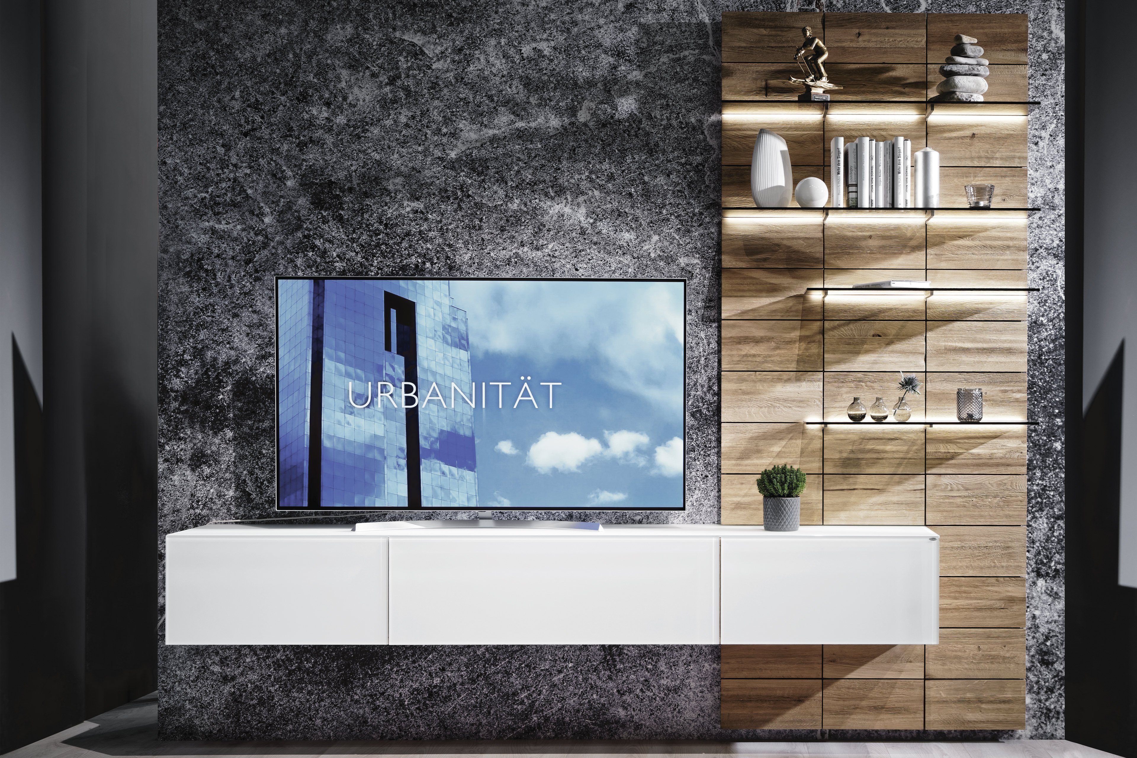V Montana Von Voglauer Wohnwand 170 Eiche Colorglas Optiwhite
